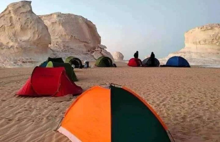 White Desert camping trip 2 days from Cairo with oasis, sandboarding, meals, and overnight under the stars in a unique desert landscape